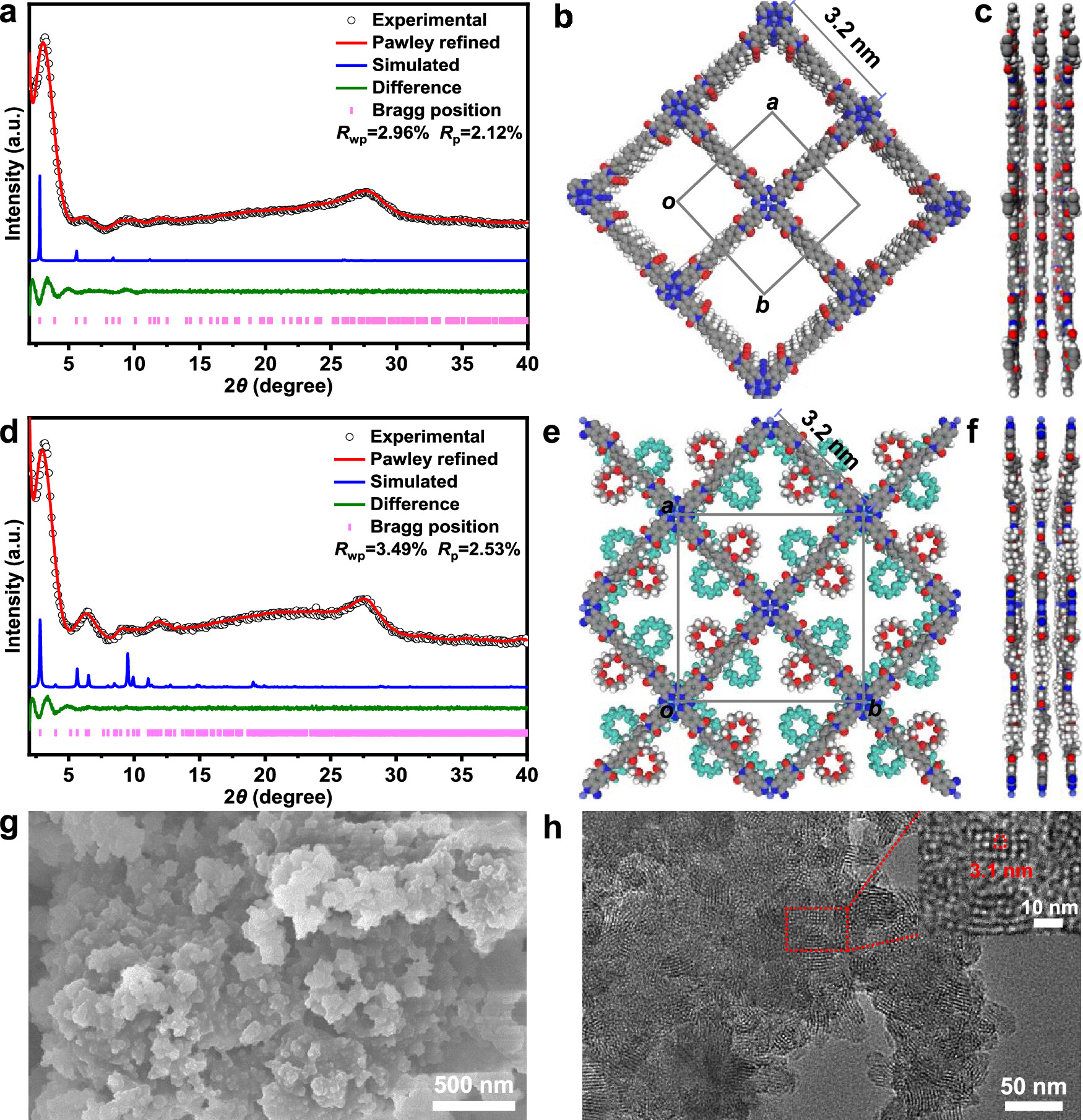 CoPc-TPA和CoPc-TPA-CE的PXRD图谱与模拟的晶体结构一致,表明成功合成了目标COFs。