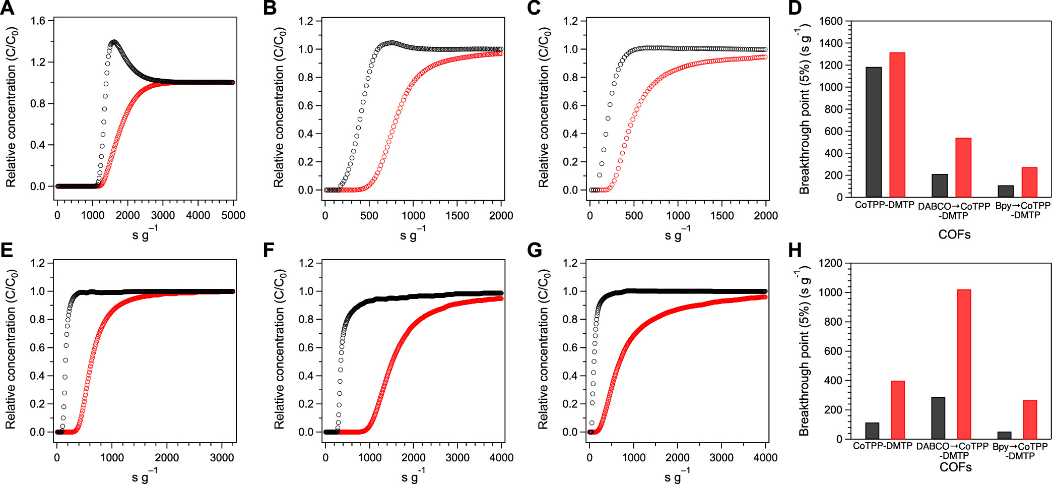 2) DABCO®CoTPP-DMTP-COF在50/50体积比的苯/环己烷混合物中的突破点为212.6 s g−1(环己烷)和540.7 s g−1(苯)。