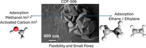 )中研究了灵活的共价有机框架(COFs)COF-506 和 COF-506-Cu 的气体吸附特性。尽管这类材料的比表面积较小(<100 m²/g),但相比于活性炭,它们对甲醇和异丙醇的吸附能力仍然显著。研究表明,COF-506 和 COF-506-Cu 在低压下对乙烷和乙烯的吸附表现出一定的选择性,尤其在高压下,乙烷的吸附能力显著增加,显示出吸附等温线的阶跃特征。本文强调了 COFs 的复杂性,指出其吸附能力与比表面积并不直接相关,并建议在研究 COFs 的气体吸附特性时应避免与活性炭的简单类比。