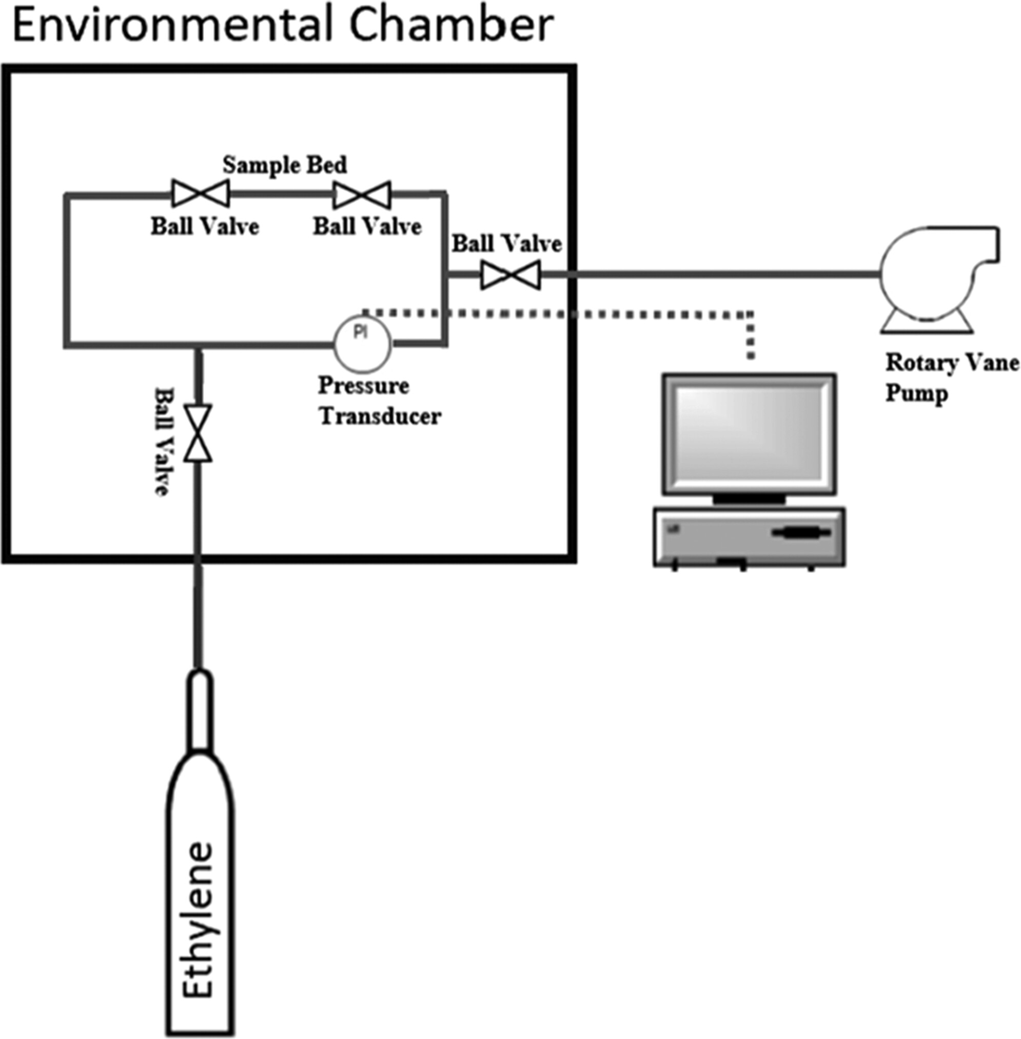 2) 通过注射口和直接从气瓶中注入气体,记录使用NIST可追溯的加热电容压力计测量的压力变化。