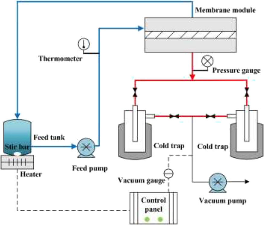 3) 达到稳态后,通过冷阱收集渗透液。对于长期稳定性实验,需要通过补充乙醇保持恒定的进料浓度。