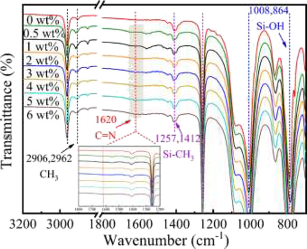 3) 将上述分散液加入到含TEOS和DBTL的PDMS溶液中,反应至适当粘度后脱气10-15分钟,获得均匀的PDMS浇铸溶液。