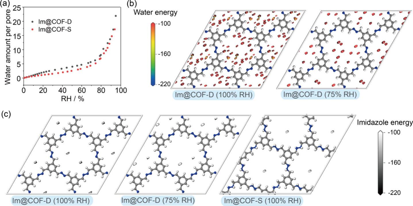 【肼N-N连接COF材料】质子传导共价有机框架中水和咪唑的拥挤效应的调节