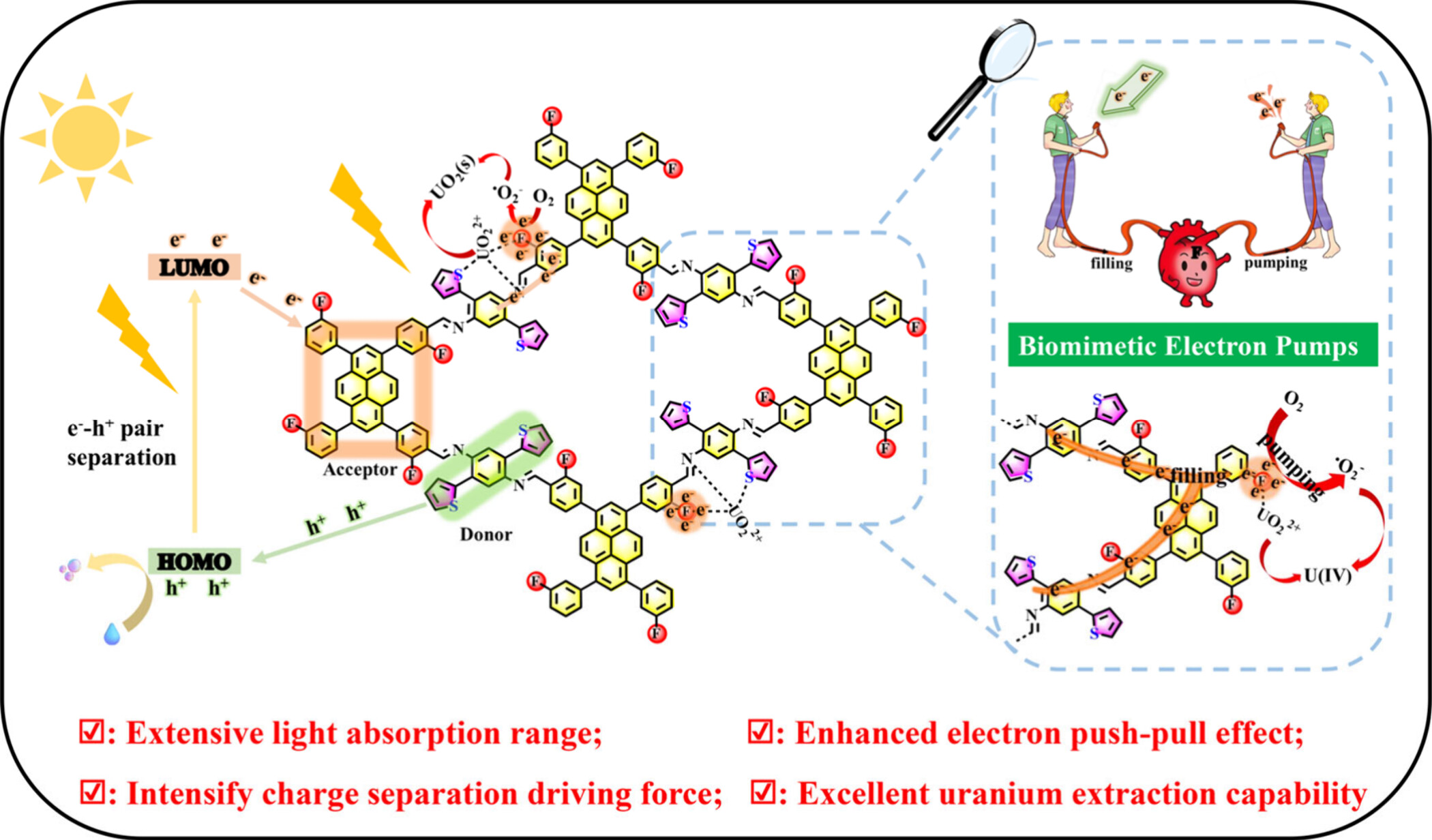 行业动态 > 【PyF-COF除铀】利用仿生电子泵促进氟取代共价有机框架中的激子解离和电荷转移,以实现铀的显著光催化提取