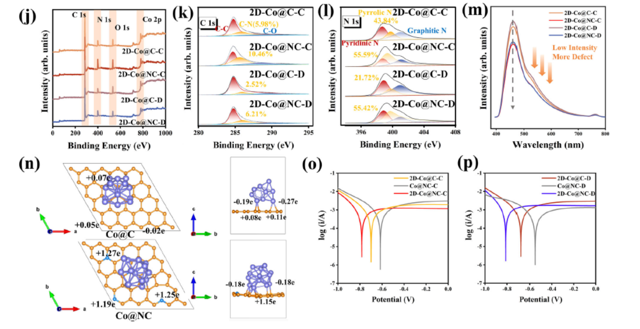 通过PL光谱分析样品的复合率。结果显示,随着吡啶N含量的增加,样品的复合率降低,表明氮掺杂引入了更多的空位缺陷,这些缺陷作为捕获电子和空穴的活性位点,诱导极化弛豫现象。