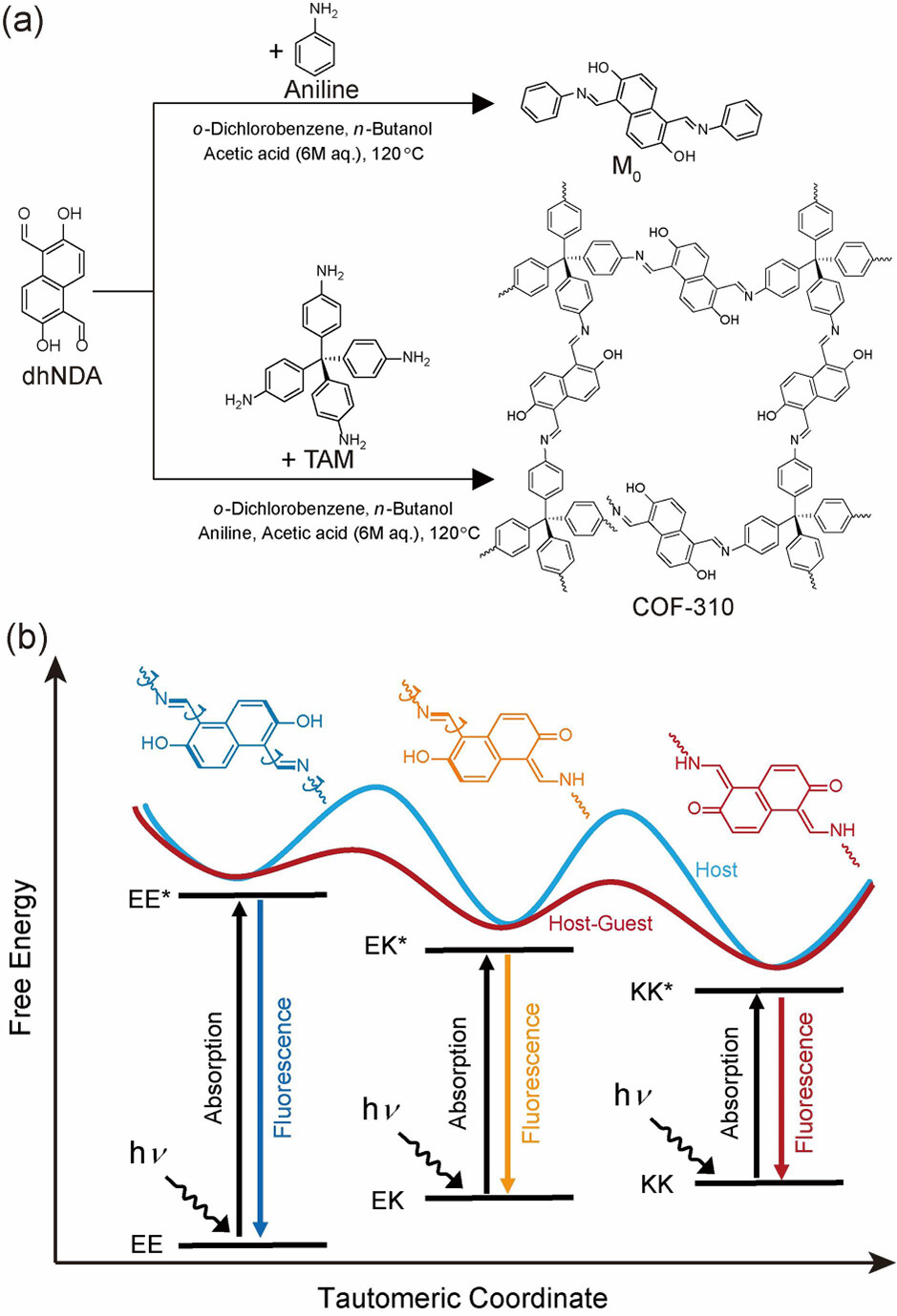 首次构建光互变异构三维 COF(COF-310),通过刚性共价键和多孔结构实现化学稳定性与客体适应性协同。