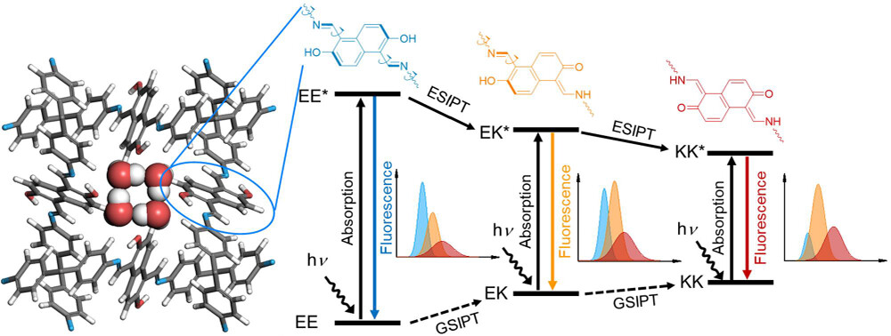 提出 “基态上坡调控” 机制,突破传统 ESIPT 材料在固态中的质子转移限制。