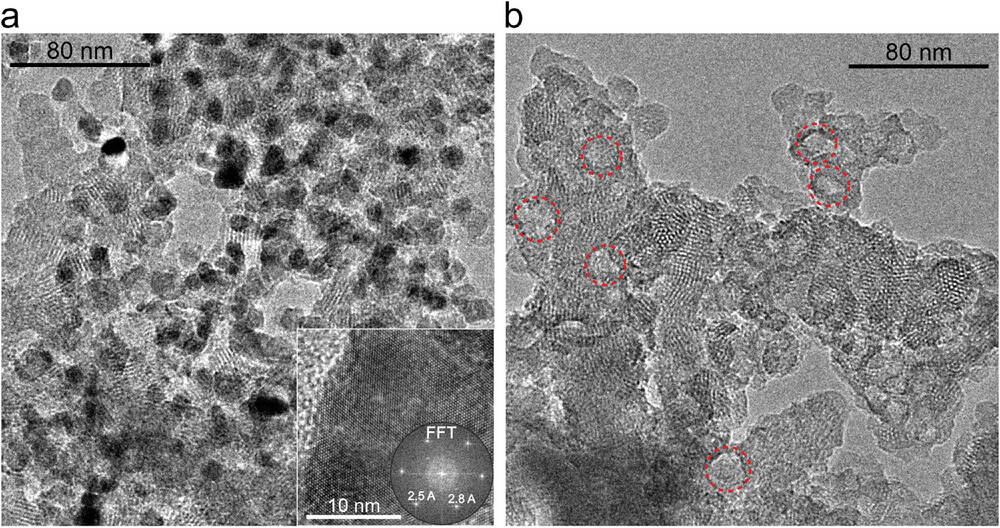 透射电子显微镜(TEM)图像显示了ZnO纳米颗粒的嵌入和去除后形成的次级孔隙。