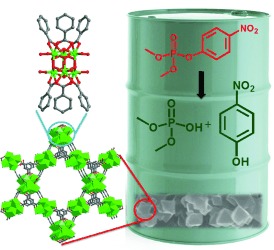 本文研究了基于磷酸盐酯的神经毒剂模拟物在金属有机框架(MOF)催化剂作用下的水解反应。具有六连接锆节点的MOF-808悬浮液,水解速率为目前已报道MOF中最高;同时制备了以MOF-808为活性层的 plug-flow 反应器,该反应器在简单过滤体系中展现出高水解效率与可重复使用性。
