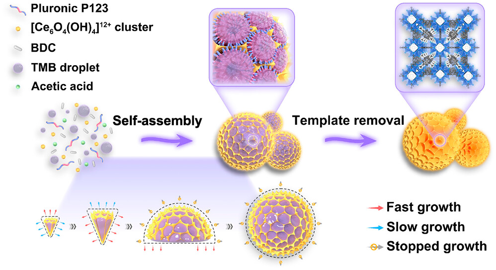2.创新突破:提出非中心对称孔诱导各向异性组装策略,实现MOF纳米结构精准调控,解决传统MOF传质难题。