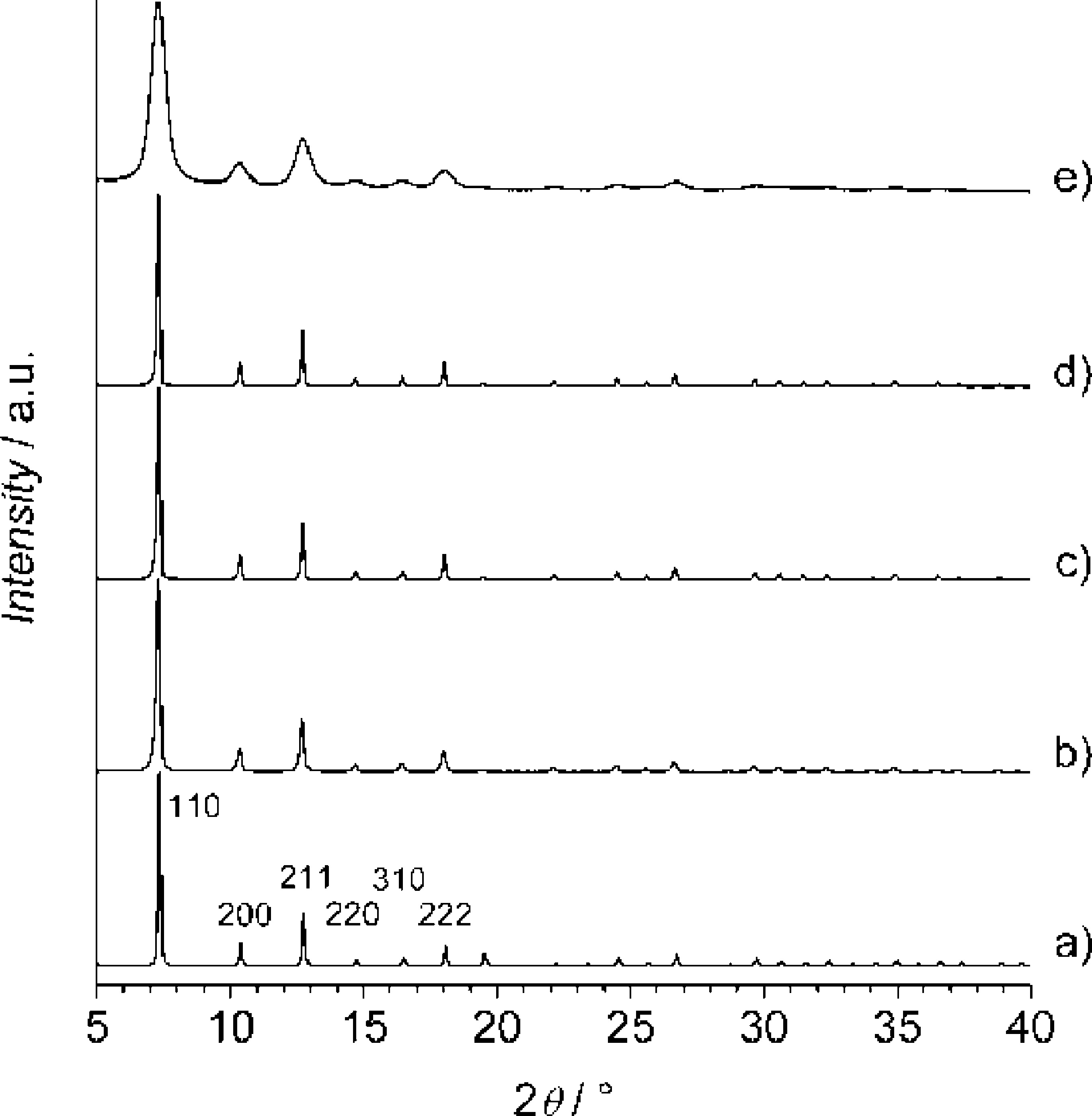 1.XRD:所有产物均为纯相ZIF-8,如18nm纳米晶、65nm纳米晶及微米晶的XRD图谱与标准图谱一致,用谢乐公式估算出晶体尺寸。