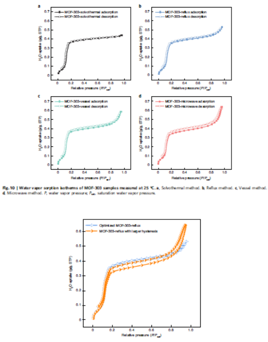 1.主要研究结果:开发四种绿色合成MOF-303方法,实现规模化生产,产品结晶度、多孔性和吸水率优异。