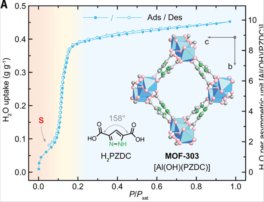 【MOF-303】金属有机框架中水分子结构的演变及其在改进大气集水性能中的应用
