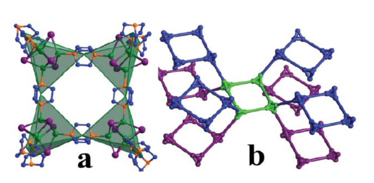 2. 本文创新:以Cu₄I₄(DABCO)₄超四面体为次级构筑单元,改变铜源组装类沸石框架,获得具有独特6⁵4拓扑和自穿透结构的异构体。