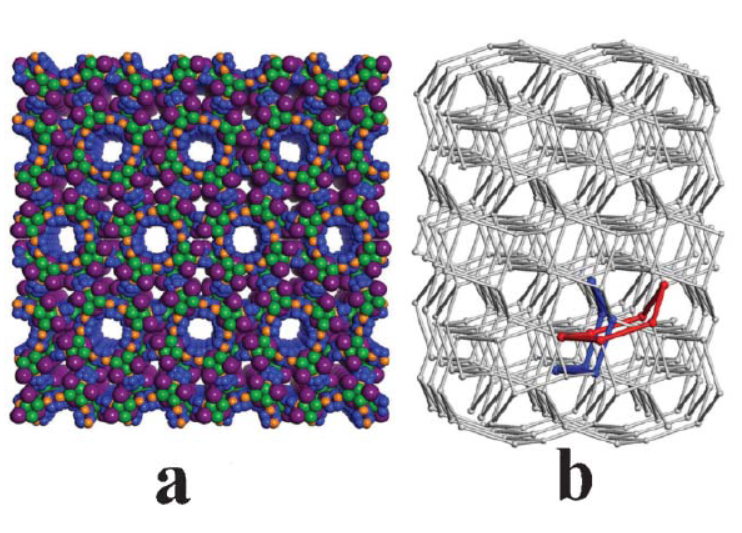 4. 结构计算:沿[001]方向有一维通道,最大通道直径6.8Å(范德华半径校正后4.4Å),空隙率43.6%。