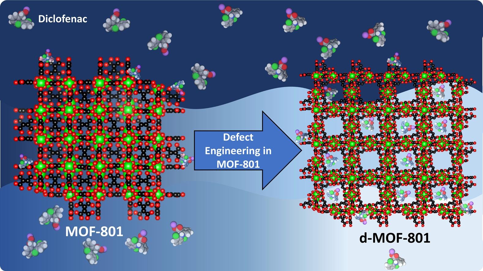 Synthesis of defective MOF-801 via an environmentally benign approach for diclofenac removal from water streams