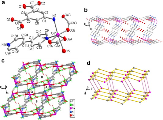 在水热条件下,以5-氨基间苯二甲酸(AIP)和4,4'-联吡啶(BPY)为原料,构建了两种具有双层结构的稳定超分子微孔聚合物[Co(AIP)(BPY)0.5·H2O]n·2nH2O(1)和[Ni(AIP)(BPY)0.5·H2O]n·2nH2O(2),二者均呈现罕见的(3,4)连接(63)(658)拓扑结构,经PXRD研究证实具有水诱导可逆转变特性。