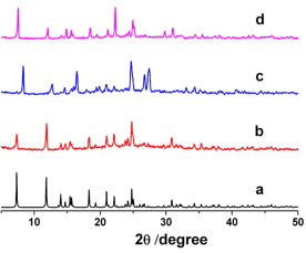 2. 测试:粉末X射线衍射(PXRD);结果:合成产物与模拟图谱吻合,脱水后衍射峰右移且保持尖锐,吸水后恢复原样;揭示:框架具有柔性,存在水诱导可逆转变。