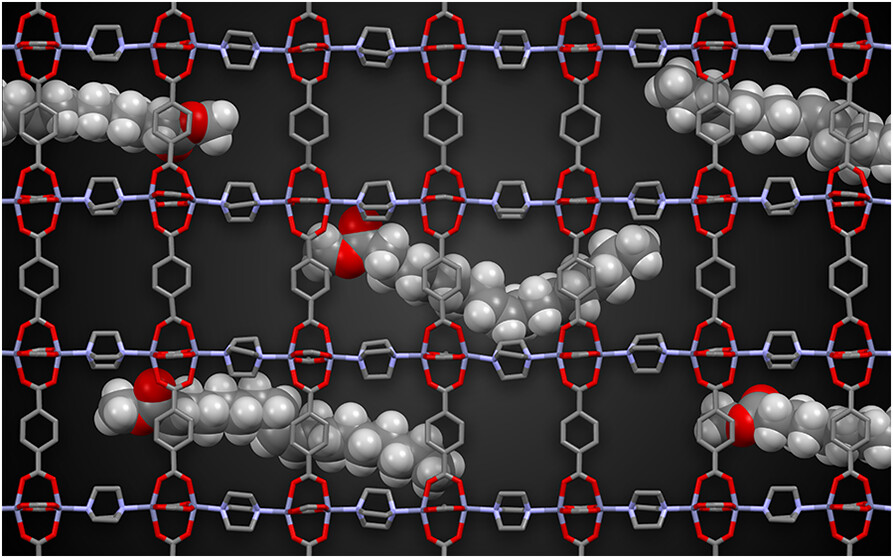 2. 提出纳米孔插入识别和多位点相互作用机制,为脂肪酸衍生物的精准分离提供新原理,拓展了MOF在复杂有机分子分离中的应用。