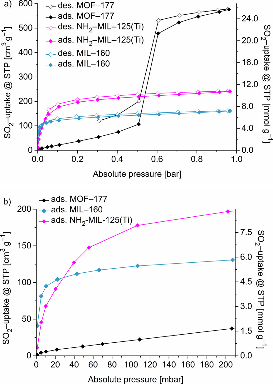 2. 创新突破:首次报道MOF-177超高SO₂吸附量,揭示MIL-160吸附机理,证实其烟气脱硫应用潜力。
