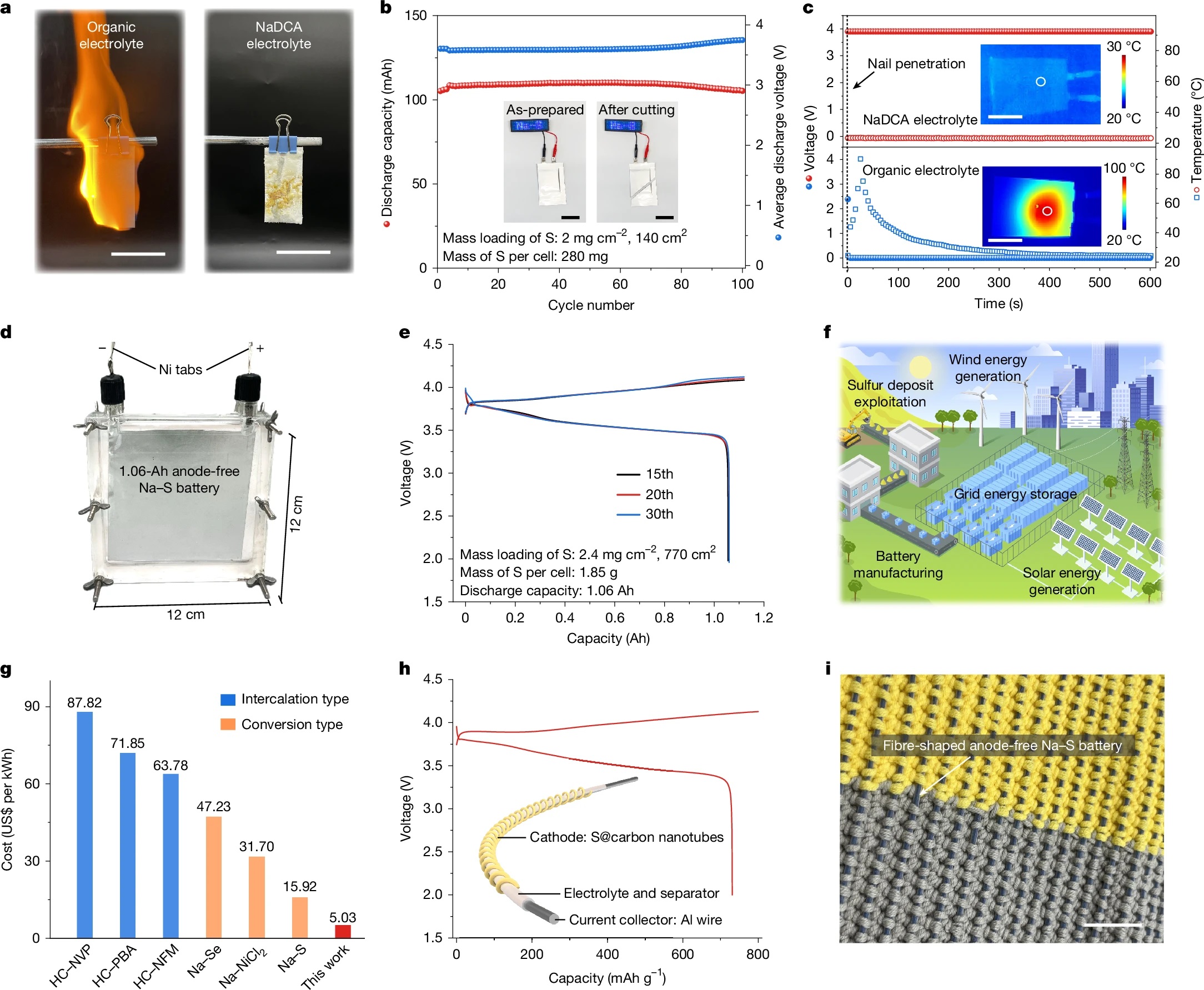 3. 电池成本仅5.03美元/kWh,兼具宽温适应性、高安全性与 scalability,已实现Ah级软包电池与纤维状可穿戴器件,推动低成本电网储能与柔性电子技术发展。