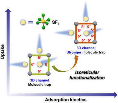 文章标题:Simultaneous Boost of SF6 Adsorption Capacity and Kinetics Through Isoreticular Functionalization of Zinc(II)-Pyrazolate Frameworks