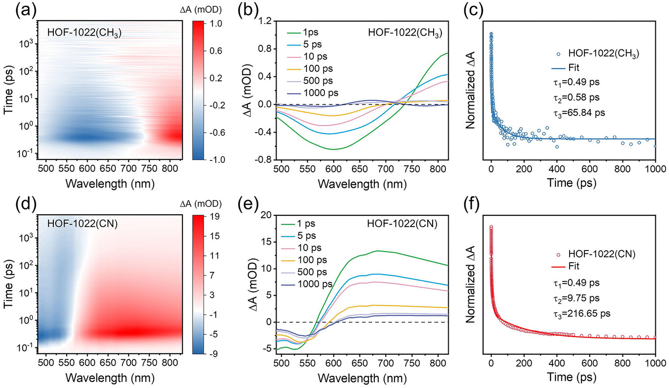 1) HOF-1022(CN)吸收边红移至670 nm,带隙1.86 eV(HOF-102为2.46 eV);