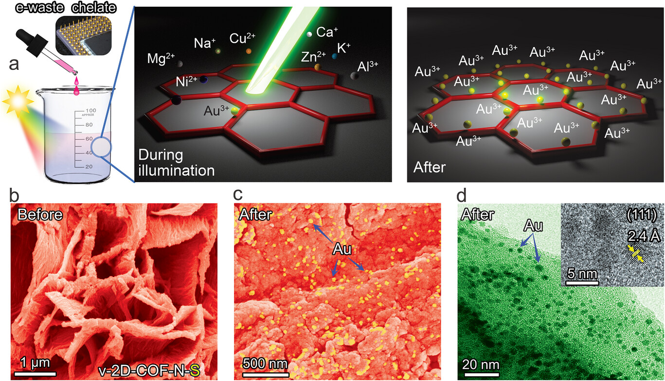 文章标题:Engineering Heteroatomic Nanotraps in Vinyl-Benzazole COFs: Record Capacity and 99% Selectivity for Photocatalytic Gold Recovery From E-Waste
