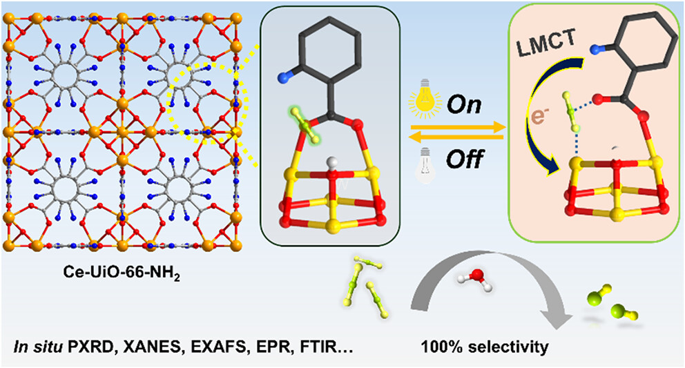 行业动态 > 【Ce-UiO-66-NH2】光诱导瞬态开放Ce(III)位点实现MOF中CO₂的可逆结合与还原