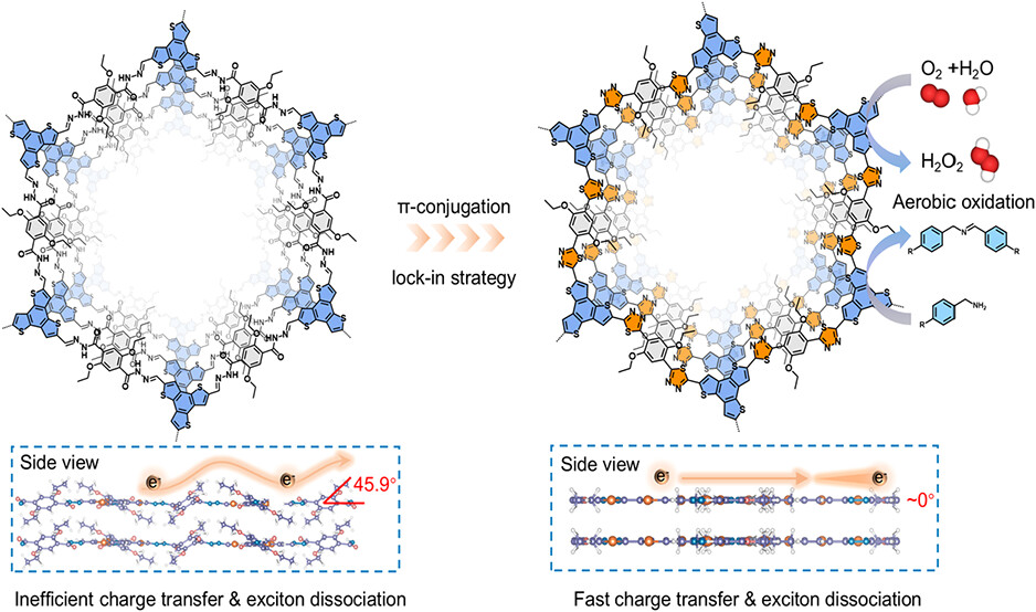 文章标题:Conjugation Lock-In Reinforced Sulfur-Heteropolycyclic Covalent Organic Frameworks with Asymmetric Electron Distribution for Photocatalytic Aerobic Oxidation Reactions