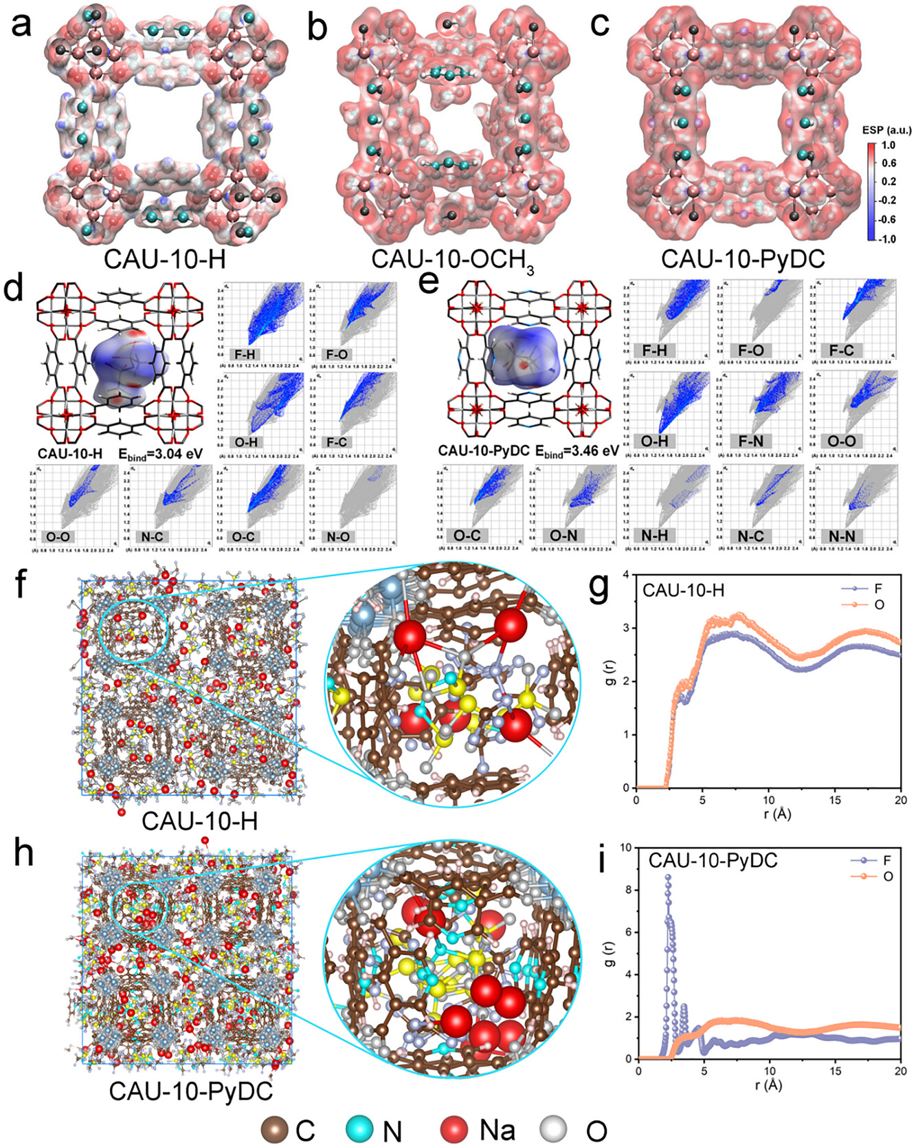 1. MOF材料合成:制备CAU-10-H、CAU-10-OCH₃、CAU-10-PyDC三种MOF,均由AlO₆八面体形成螺旋棒状SBU,再与不同有机配体连接,孔径分别为8.0 Å、4.7 Å、8.5 Å,CAU-10-PyDC的吡啶氮原子暴露于孔道内。