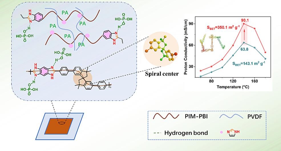Polybenzimidazole-based polymers of intrinsic microporosity membrane for high-temperature proton conduction