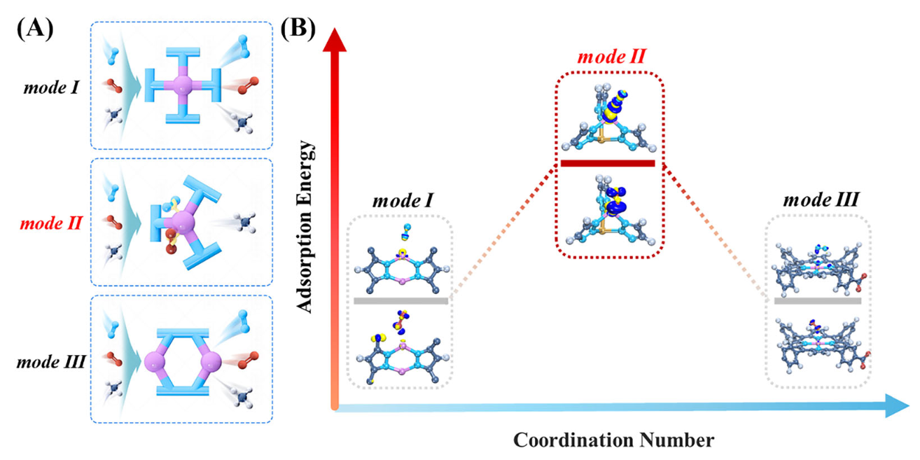 1. 位点设计机理:DFT 对比三种配位模型,Cu (I)‑3N 不饱和构型电子转移最显著,对 N₂/O₂吸附能最低、结合最强;饱和位点活性受限,低配位位点无法形成有效 π 反馈键。