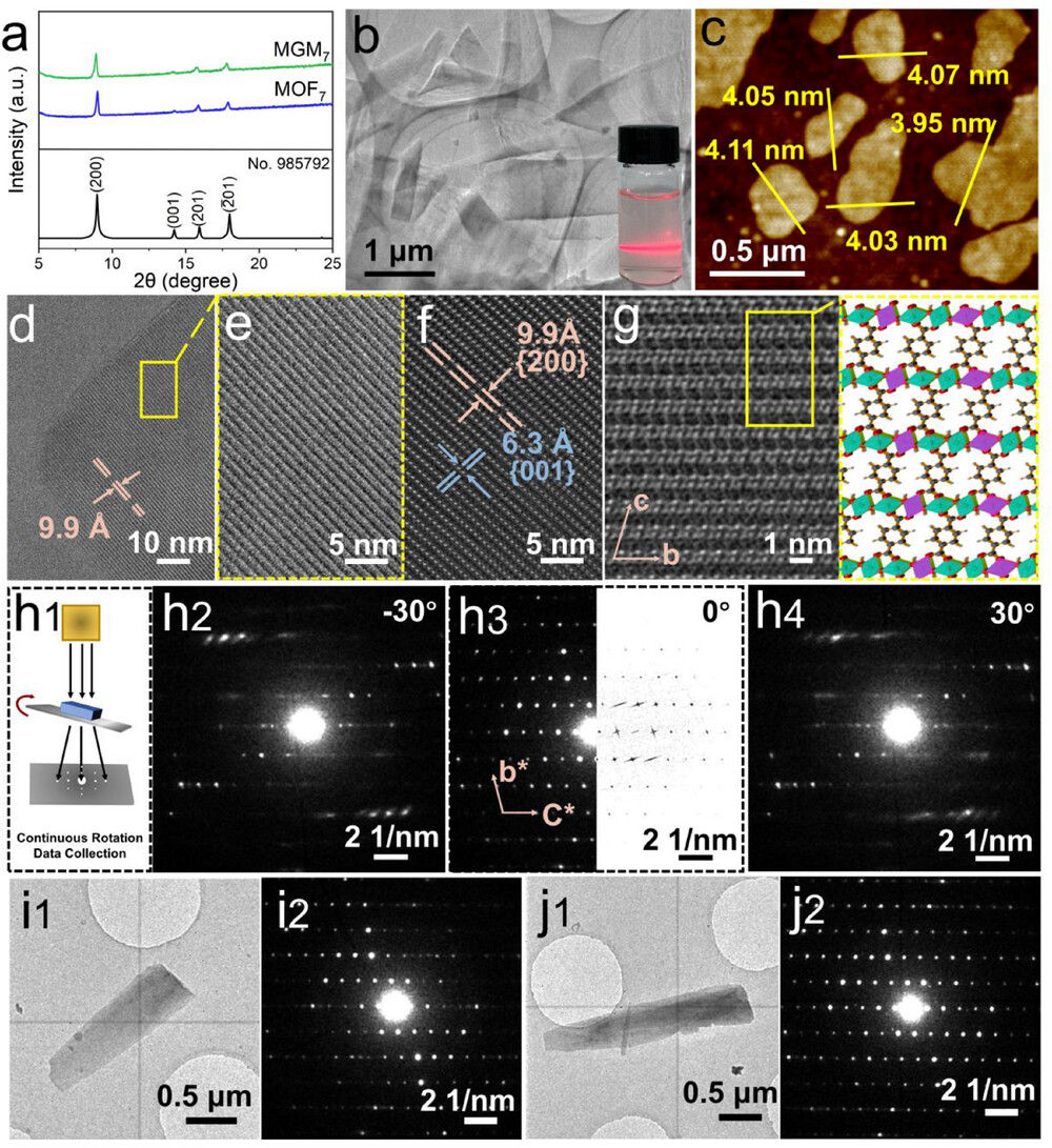 所得 MGM₇纳米片厚度 4 nm、单晶结构、分散性优异,电导率与电化学活性表面积大幅提升,在 OER、碱性锌电池、钠离子电池中性能领先同类 MOF 基材料。