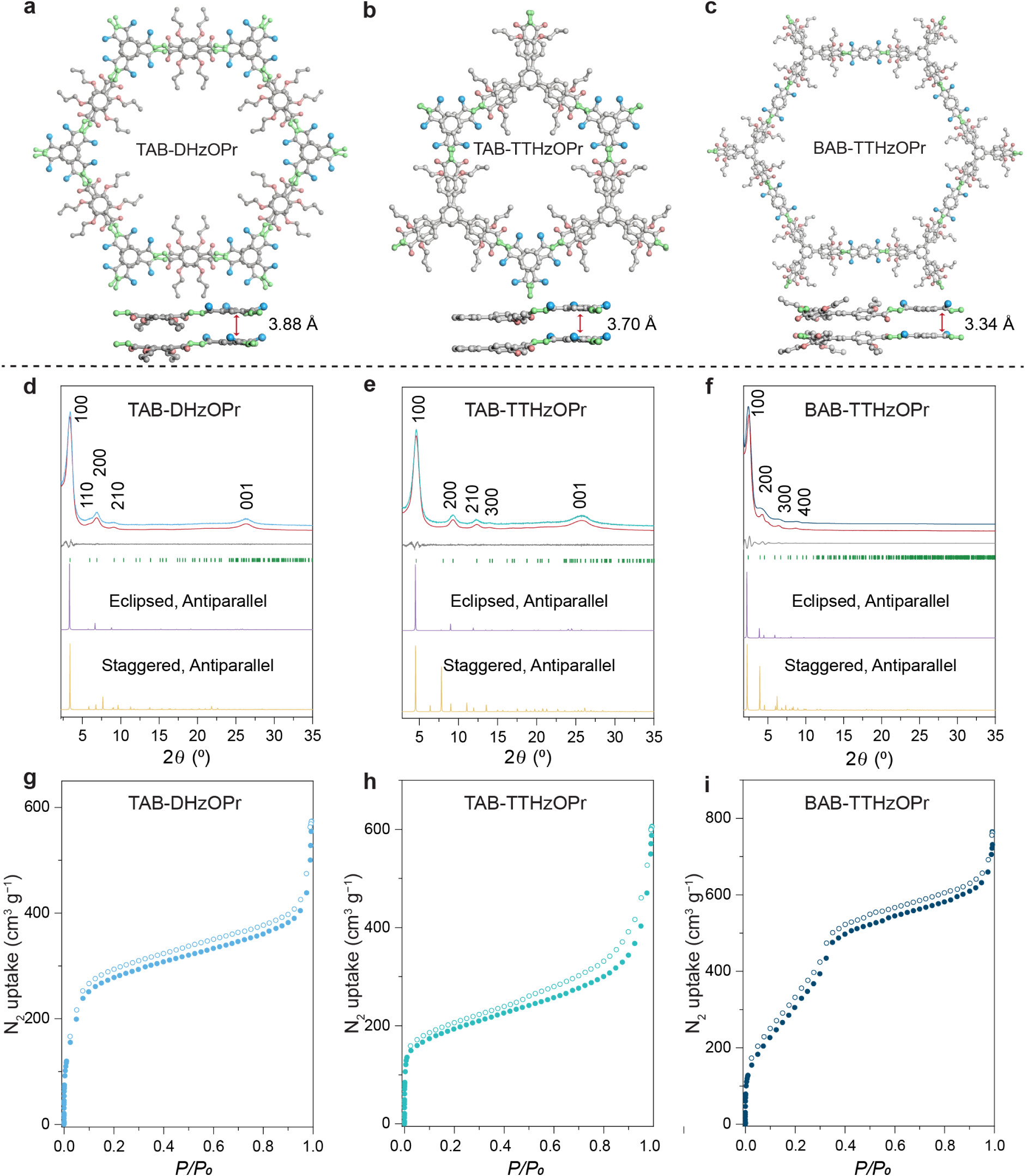 证实所有材料采取反平行、重叠堆叠模式,为同类 COFs 中罕见结构。
