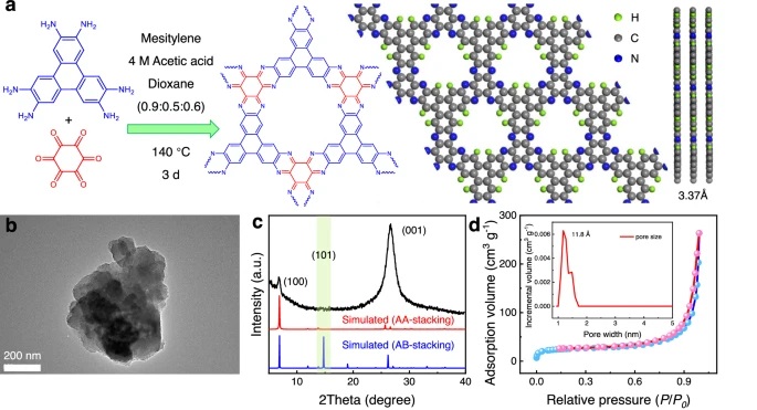 (1) 合成NGA-COF:采用溶剂热法合成,具有规则的二维层状结构和3.37 Å的层间距离。