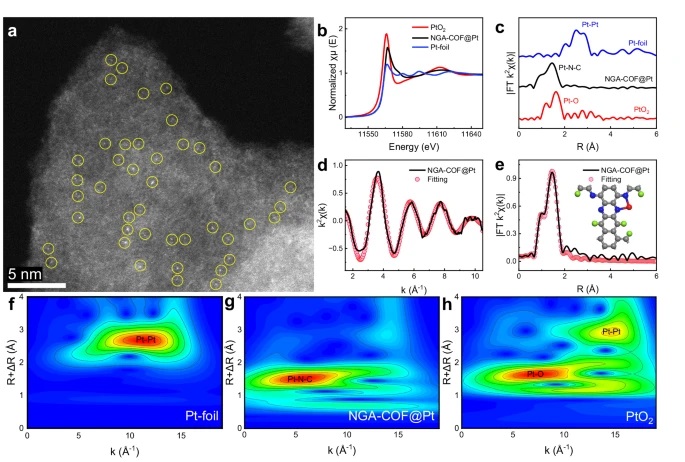 (1) 成功制备了一种无导电剂和无热解的铂基单原子催化剂NGA-COF@Pt,并揭示了其独特的Pt-N2H2配位环境。