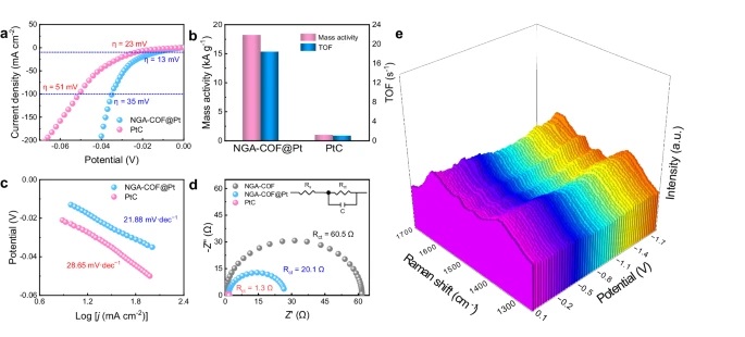 (2) 铂单原子与NGA-COF之间的互补金属-载体相互作用大大提高了催化剂的电导率和每个铂位点的本征活性。