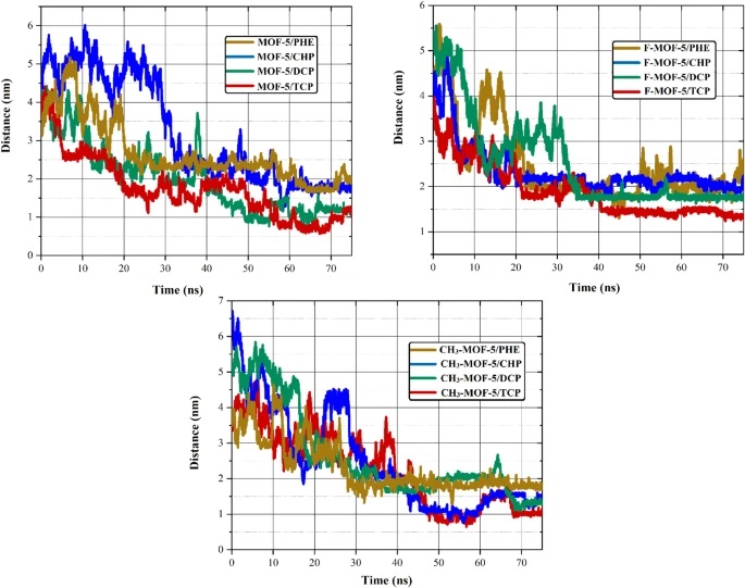 - 通过模拟,发现F-MOF-5增加了吸附剂表面的苯酚化合物吸附能力,而CH3-MOF-5则降低了吸附强度。