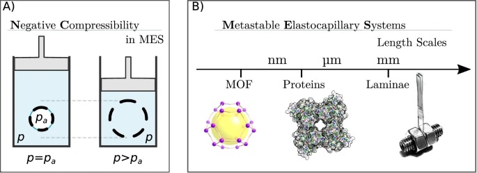 Università degli Studi di Ferrara Simone Meloni&University of Silesia Yaroslav Grosu&Sapienza Università di Roma Carlo Massimo Casciola&Alberto Giacomello等报道的本篇文章(Nat Commun 15, 5076 (2024))中研究了一种特殊的物理现象——负压缩率(NC),即材料在受压时体积增大,或在减压时体积减小。作者提出了一种利用毛细力对弹性材料进行预压缩,并通过在疏水性柔性空腔中形成气泡的阈值现象来释放这种预压缩,从而实现负压缩率的策略。研究展示了在不同尺度上,包括疏水性微孔材料、蛋白质和毫米级薄片,这类亚稳态弹性毛细管系统(MES)的固态部分表现出负压缩率。这一概念可应用于多孔材料、生物分子、传感器等领域,并有可能扩展到创造新的材料特性。