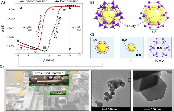 - 在Advanced Photon Source (APS)的17BM束线上,对ZIF-67样品进行原位压力同步辐射粉末衍射研究,观察到显著的负压缩率现象。