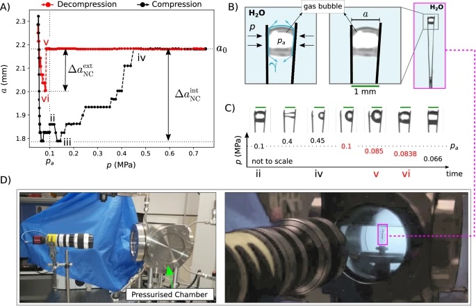 - 通过实验观察,确认了在疏水性空腔中气泡的形成与消失过程,这一过程与负压缩率现象密切相关。