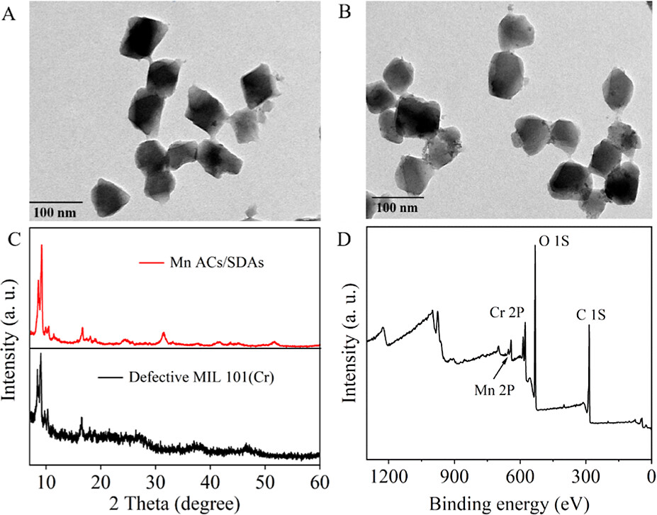 - 证实了缺陷MIL 101(Cr)和Mn ACs/SDAs具有相似的官能团,表明引入的Mn没有破坏其官能团。