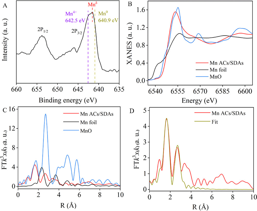 - Mn ACs/SDAs中Mn 2p3/2的峰位在641.7 eV,表明Mn的化学价态在0到+4之间。