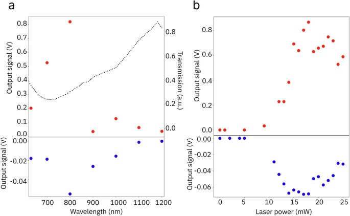 3. 光谱依赖性分析:在600至1200纳米的波长范围内,逻辑元素的脉冲幅度随激光波长变化,与HKUST-1的吸收谱一致。
