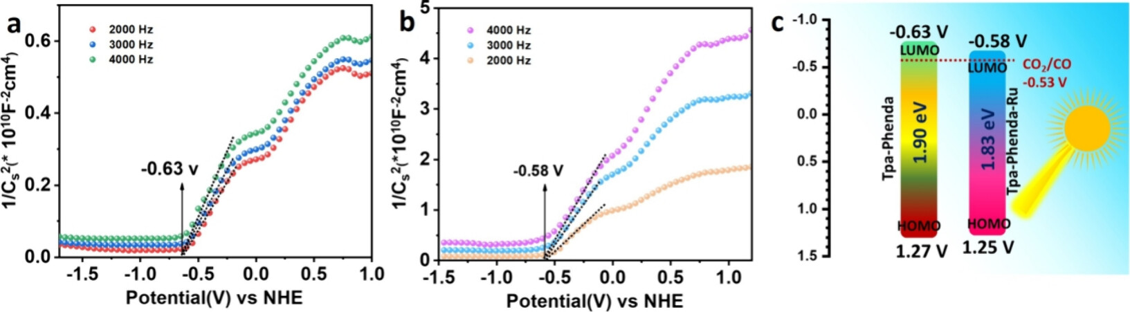 11. 光电流响应:Tpa-Phenda-Ru在光电流响应上显示出比Tpa-Phenda更高的电流密度。