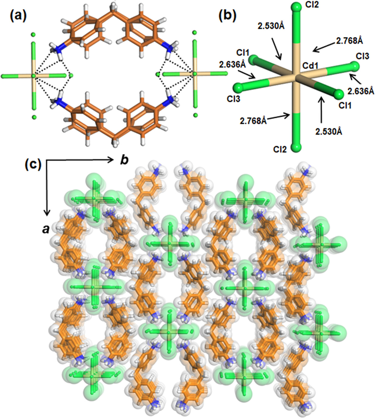 菏泽学院张冰寒\辽宁大学郭放老师等报道的本篇文章(Cryst. Growth Des. 2024)中介绍了一种新型的金属-氢键有机框架(MHOFs),这些框架通过第二球层配位方法自组装而成。研究团队利用弯曲形状的有机二阳离子H2L(L=4,4'-亚甲基二苯胺)与X−,[MX4]2−或[MX6]4−(X=Cl, Br; M=Cd, Pd, Sn)进行自组装,形成了具有一维(1D)通道或半封闭笼状结构的网络。这些框架在热稳定性上表现出色,能够在熔点以下保持通道结构,并在去除H2O后,通过通道吸收不同的液态溶剂。研究还探讨了氢键在形成这些1D通道中的作用,不同阴离子对金属氢键有机框架(MHOFs)构建的影响,以及这些框架内客体交换的行为。