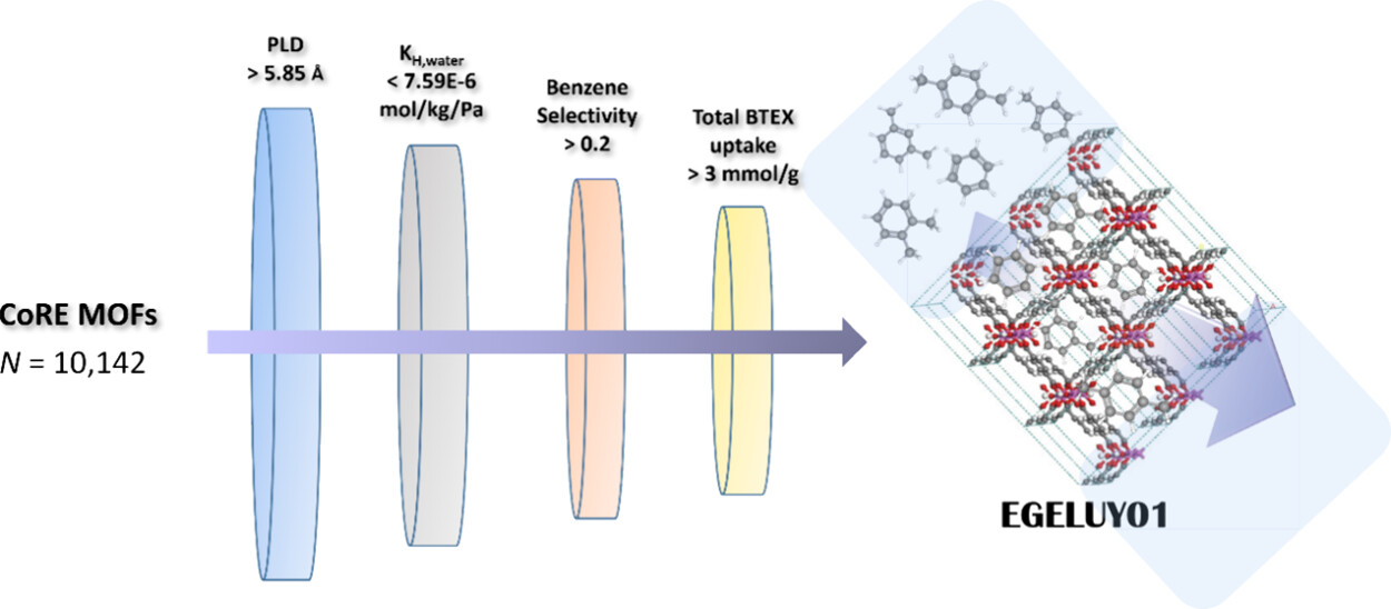 Large-Scale Computational Screening-Aided Development of High-Performance Adsorbent for Simultaneous Capture of Aromatic Volatile Organic Compounds 文章作者:Seo-Yul Kim,§ Min Woo Shin,§ Kwang Hyun Oh, and Youn-Sang Bae* DOI:10.1021/acsami.4c08171 文章链接:https://pubs.acs.org/doi/10.1021/acsami.4c08171