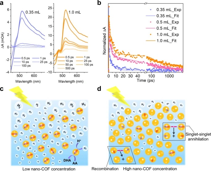2) 利用瞬态吸收光谱(TAS)技术研究nano-COFs在不同浓度下的电荷载流子动力学。