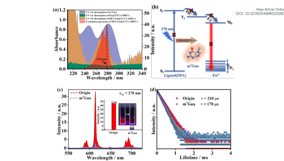 - 测试结果:DPA/Eu@ETTA-DHTA COF与m7Gua的吸收光谱在240-290 nm范围内重叠。